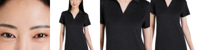 5 oz./yd² (US), 8.4 oz./L yd (CA), 54/46 recycled polyester/polyester piqué Moisture-wicking performance UPF 40+ protection Self-fabric collar with collar stand Decorative inner neck tape Self-fabric flat piping along front yoke seams Contrast side slit facings