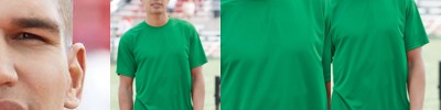 - 5.3 oz., 95/5 cotton/spandex jersey knit, 30 singles