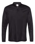 Badger Adult B-Core 1/4 Sleeve Short Sleeve Shirt. 100% Polyester moisture management/antimicrobial performance fabric. Self-fabric collar with 7 locking zipper. Contrast zipper & inner collar. Badger sport shoulder for maximum movement with coverstitch. Double-needle hemmed bottom. Badger heat seal logo on left sleeve