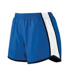 Augusta Ladies Junior Fit Pulse Team Short. Shell is 100% polyester micropoly *Inserts are 100% polyester mesh *Lining is 100% polyester wicking crepe *Liner wicks moisture away from the body *Junior fit *Low rise *Covered elastic waistband with inside drawcord *Inner brief with leg elastic *Inside key pocket *Mesh inserts on panel *4-inch inseam *Contrasting self-fabric binding on side panels and hem. Also available in Girls, Style 1266.