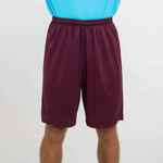 Badger Adult Polymesh Pocket Shorts With 9 Inseam. 100% polyester, 70 denier pro-mesh with solid tricot liner. Side entry pockets. Athletic cut. Superior fit. 2 covered elastic waistband and drawcord.