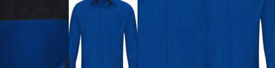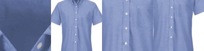 - Two-piece, lined, banded, topstitched, button-down with contrasting inside collar band