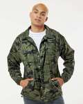 Burnside Redwood 5.4oz Flannel Jacket. 5.4 oz./yd, 100% cotton flannel shell. 100% polyester filling. Quilted nylon lining. Sherpa-lined hood with drawcord. Two chest pockets with hook-and-loop flap closure. Adjustable button cuffs. Side-entry pockets.
