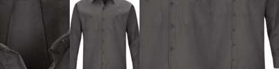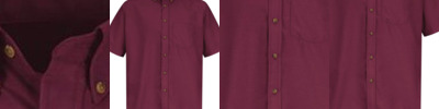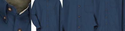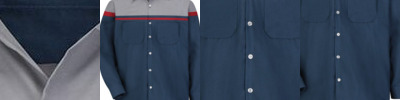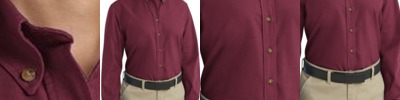 - Two-piece, lined, banded, topstitched, button-down with contrasting inside collar band