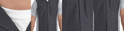 - Six button front plus gripper at neck