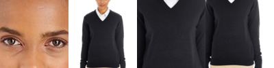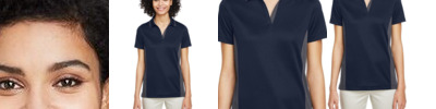 6.5 oz./yd², 100% polyester Moisture-wicking performance UPF 15-39 protection Anti-microbial properties Snag Protection Plus jersey Matching knit collar with double tipping Feminine V-neck placket with contrast inner detail Side vents